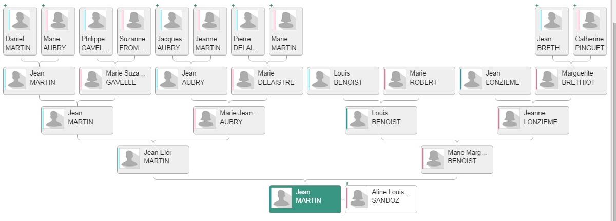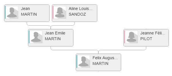 | Les tombes sont au nombre de sept, dont une seule compte deux corps soit huit défunts. L’étude des ascendants ne permet pas de penser que le cimetière ait contenu d’autre corps auparavant,on ne connait pas le lieu de décès de ses parents,ils vivaient toutefois dans le faubourg Saint-Nicolas de meaux ,ses GPP aussi son gpp fut enterré dans le jardin d’un coreligionnaire,ses GPM vivaient à Quincy. Légende : 1 – Patriarche et personnage central son épitaphe dit l’essentiel,Protestant il était né à Meaux 2 – Épouse de 1 née à Paris on sait peu de son ascendance si ce n’est un nom plutôt d’origine suisse 3 – Seul tombeau contenant deux corps : le Fils des précédents,instituteur ,et son épouse ascendance encore indéfinie 4 – Fille de 1 et 2 sans descendance connue 5 – Fils de 3 il se marie et fait profession de distillateur dans le Pas de calais ou il mourra 6 – Servante de Jean et son épouse native de Prusse son ascendance n’est pas connue 7 – Pierre la plus difficile à décrypter,je crois lire Louise Pauline MARTIN; si c’est bien le cas il s’agit sans doute de Louise Pauline MARTIN. Décédée à Crécy le 5 Février 1858, elle fut proche du couple MARTIN plus par une même foi que par un lien familial. A défaut de chaînon manquant possible, le cousinage est relativement éloigné. MARTIN, Louise, Pauline est une petite-cousine germaine de 2e génération de MARTIN, Jean En effet, Ascendants de Felix Auguste Emile MARTIN Génération 1 Génération 2 … marié avec… 3 Jeanne Félicitée PILOT, née vers 1819, décédée vers 1913 (à l’âge de peut-être 94 ans). Génération 3 5 Aline Louise Caroline SANDOZ, née le 2 février 1797, Paris, , , Seine, Île-de-France, FRANCE, décédée le 8 avril 1856, Crecy-en-Brie, 77142, , Seine-et-Marne, Île-de-France, FRANCE (à l’âge de 59 ans). Parents: 10 et 11. Génération 4 … marié le 15 février 1779, Meaux, 77284, , Seine-et-Marne, Île-de-France, FRANCE, avec… 9 Marie Marguerite BENOIST, née le 12 septembre 1758, Quincy, 77382, , Seine-et-Marne, Île-de-France, FRANCE, décédée. 10 Adam SANDOZ. suivent 8 générations pour 114 personnes Ascendances de Felix Auguste et de Louise Pauline également prévisible: Arbre descendant de MARTIN, Jean  Arbre descendant de MARTIN, Louise, Pauline  MARTIN, Louise, Pauline o 1801 + 1858 x MACIET, François, Joseph o 1802 x 1826 + 1873 -3 GARNIER, Lucien, Bernard, Paul o 1881 + 1944 x BRAURE, Céline, Claire, Juliette x 1919 -4 GARNIER, Louis  -3 GARNIER, Henri, Paul o 1885 + 1954 x PIGORNET, Anne, Marie o 1889 x 1910 + 1981  -3 PLISSON, Yvonne, Marie o 1889 + ?__  -3 BATICLE, Lucile, Pauline, Leontine o 1898 + 1984 x JARRY, Pierre o 1898 x 1929 + ?__ Merci à Jean DEBRIT pour ses précieuses recherches. |
