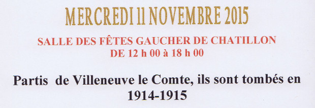 Expo 11 novembre à Villeneuve le comte par PELGAS Alain · 7 novembre 2015 Exposition guerre 14-18 à Villeneuve. fiches détaillées des personnes tombées en 14 et 15 avec une petite généalogie de leur famille. (article vu 4 fois) Partager