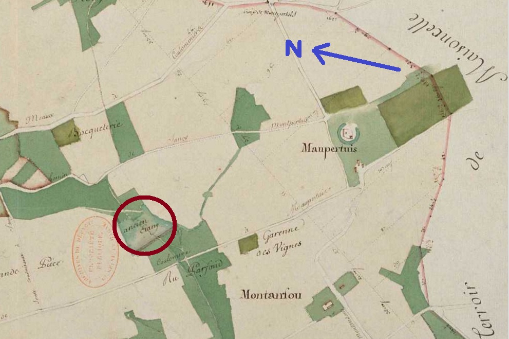 Sur le plan d’intendance un ancien étang est indiqué. A rapprocher de l’endroit repéré par nos promeneurs.