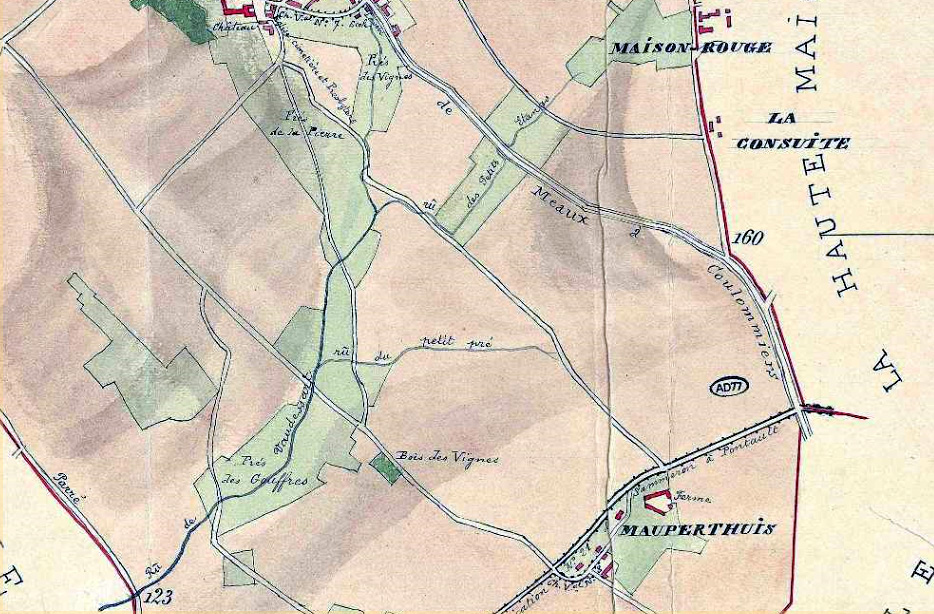 Cette région s’appelait autrefois le Brie des étangs. J’ai complété l’article par une carte ancienne extraite de la visite virtuelle de l’église de La Haute-Maison par Jacques Piedeloup et visible sur le site du pays créçois. Le territoire concerné est en limite de carte mais il ne semble pas y avoir eu d’étang à cet endroit, mais vu la densité d’étangs visible sur la carte on peut supposer qu’il y en ait eu. Une piste à poursuivre.