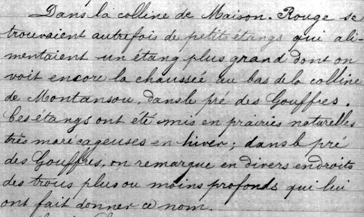L’étang qui se trouve à Montaudier le bas, sur le ru de la Fosse au Coq, ne figure pas sur les cartes anciennes, et doit être plus récent. Qui connaîtrait la date de sa création ?