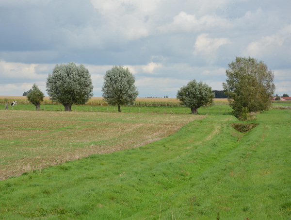 Le ru de Vaudessart, au dessus de la départementale semble bordé d’un alignement de saules, il faudrait savoir si il passe sous la route pour rejoindre la partie aval, ou si il s’écoule dans le fossé amont de la route.