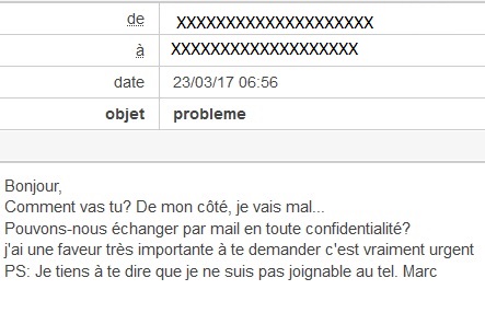 "Objet : Voyage Bonjour, J’ai un problème urgent à t’expliquer. Dans l’attente, JM Sagnes" " Re: J’attends ta réponses ! Aurelio, Merci pleinement pour ta réponse. En effet, je suis en voyage en Grèce où j’ai quelques soucis en ce moment, je me suis fait voler mon sac de voyage contenant mon téléphone et l’argent liquide, je dispose de ma carte Prépayée TRANSCASH. Tout ce dont j’ai besoin est que tu m’achète 3 coupons – recharges Transcash de 300€ ( 900 € ) afin que je puisse recharger ma carte prépayée, je vais m’atteler à te rendre cette somme dès mon retour. Si tu es toujours disposé à m’aider car j’en n’ai vraiment besoin, je te dirai où tu pourras les acheter. Mille merci d’avance." Amicalement" variante reçue par d’autres : ce n’était pas la Grèce mais la Corse, le pirate varie son texte de temps en temps ! Dans le cas de d’une autre personne, le premier message était : Bonjour, Comment vas tu? De mon côté, je vais mal… PS: Je tiens à te dire que je ne suis pas joignable au tel. Marc" Depuis mon compte personnel j’ai répondu au pirate que je n’étais pas dupe ce qui a clos l’échange. Sur le mail des brionautes qui a également reçu le message j’ai eu l’idée de jouer le jeu en répondant : Dans les 5mn j’avais la réponse : "Objet: Re: probleme Je suis vraiment content de te lire. Je te remercie de m’accorder un peu de ton temps. Je suis en déplacement et de retour ce soir. Malheureusement, j’ai rencontré quelques soucis(grave/santé) que je ne peux malheureusement pas réglé par faute de manque de fond. Je t’expliquerai mieux une fois rentré. J’aimerais que tu te rendes chez le buraliste et demandé à avoir 4 coupons PCS de 250 e. Puis me faire parvenir les numéros par mail. Je te les rendrai une fois rentré en soirée. Tu y vas rapidement? Merci pour ta confiance, à te relire. Marc" Dans les 2 cas on retrouve les mêmes caractéristiques : Comment est-ce possible ? En fait le pirate prend le contrôle total de votre compte mail. Il n’y a rien à faire sur le PC, tout se passe sur le serveur de mail. Il faut donc appeler le fournisseur d’accès pour qu’il rétablisse avec vous la situation. Au téléphone en direct il vous fera faire des manipulations. Dans le cas de Orange, c’est le 3900 qu’il faut appeler. Le pirate s’est introduit en craquant le mot de passe. De quelle manière ? était-il trop simple ? l’a-t-il capté en installant un virus sur votre PC ? ou l’a-t-il volé sur le serveur du fournisseur d’accès ? Le plus vraisemblable est le premier cas, d’où la nécessité d’avoir un mot de passe compliqué et de le changer de temps en temps. 2 – il a modifié l’adresse de secours, celle qui permet de recevoir un nouveau mot de passe et mis la sienne à la place évidemment. Par contre il ne prend pas la peine de changer le mot de passe tout de suite. Le dépannage consiste à supprimer l’adresse de redirection, remettre l’adresse de secours et changer son mot de passe. Si on arrive à le faire soi-même, sans être contrecarré par le pirate qui rectifie aussitôt, c’est bien. Sinon il vaut mieux appeler le service support fournisseur d’accès, le 3900 pour Orange. Dans le cas de Orange il existe une cellule qui centralise les informations de piratage, elle est accessible par l’adresse mail abuse@orange.fr Et pour limiter les risques : Autre aventure qui arrive assez souvent, ce sont les messages de type spams que l’on reçoit venant d’un contact. En général ce type de message, souvent en anglais, invite à cliquer sur un lien vers un site de harponnage qui va essayer d’introduire un virus. Les bons anti-spams filtrent ce type de messages le plus souvent. En l’occurrence le mail de votre contact n’a pas été piraté, mais on s’est servi de son adresse pour vous faire croire que c’est cette personne qui vous écrit. C’est comme si on vous envoie une lettre en mettant à l’arrière un mauvais nom d’expéditeur, personne vérifiera. Pour pousser la comparaison, dans le premier cas explicité plus haut, c’est comme si le pirate avait vraiment occupé votre domicile. Dans le second cas, c’est juste le dos de l’enveloppe qui est faux. Techniquement c’est très facile à faire, il suffit d’envoyer son message via un serveur de messagerie situé dans pays étranger pas très regardant pour se faire passer pour quelqu’un d’autre. En l’occurrence si vous répondez à un tel message c’est votre correspondant habituel qui reçoit et non le pirate comme dans le premier cas. Là où ce type de message peut faire mouche, c’est dans le fait qu’il provient assez souvent de quelqu’un que l’on connait, d’où une certaine confiance qui participe au spam. Donc à la base, un jour ou l’autre il y a eu vol de carnet d’adresses, et son exploitation peut durer longtemps, il suffit de le savoir. Ces messages sont assez souvent faciles à repérer, le nom et l’adresse mail n’étant pas forcément concordants. |