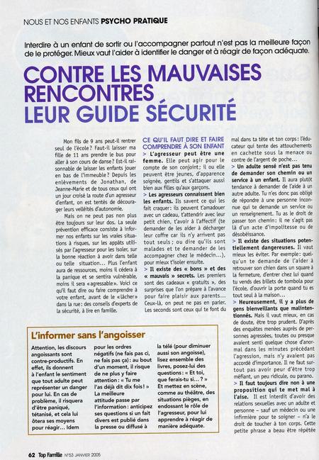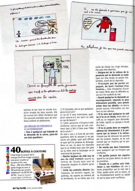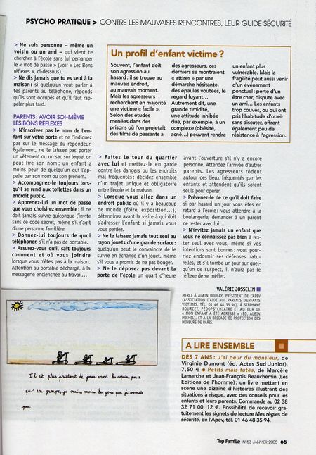 Et voilà que la retrouvons ce mois-ci, dans les colonnes du magasine « TOP Famille » (numéro de janvier 2005). Un parcours inattendu qui, vous imaginez, ravit une fois encore les anciens de la classe, arrivés aujourd’hui en CE2.