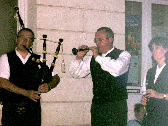 | Dans la foule curieuse et enthousiaste | Très physique la cornemuse ! |